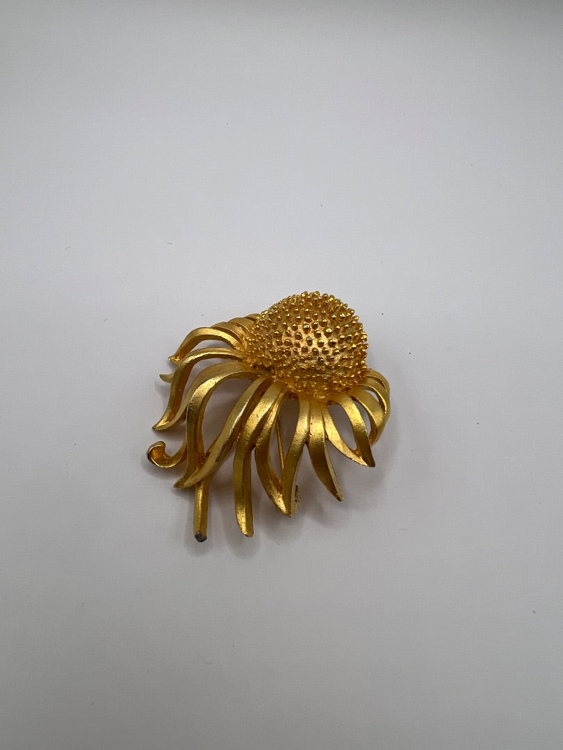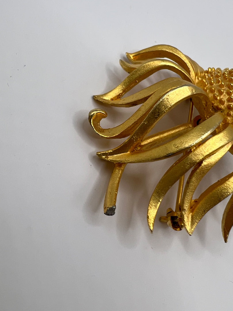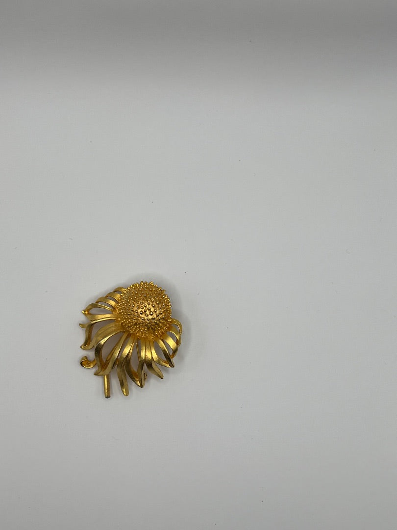 Michael Boucher vintage / antique gold toned sunflower brooch with detailed dimensional design with a textured center