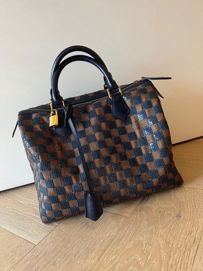 Damier Ebene Canvas Navy Sequin Louis Vuitton Handbag, Speedy 30