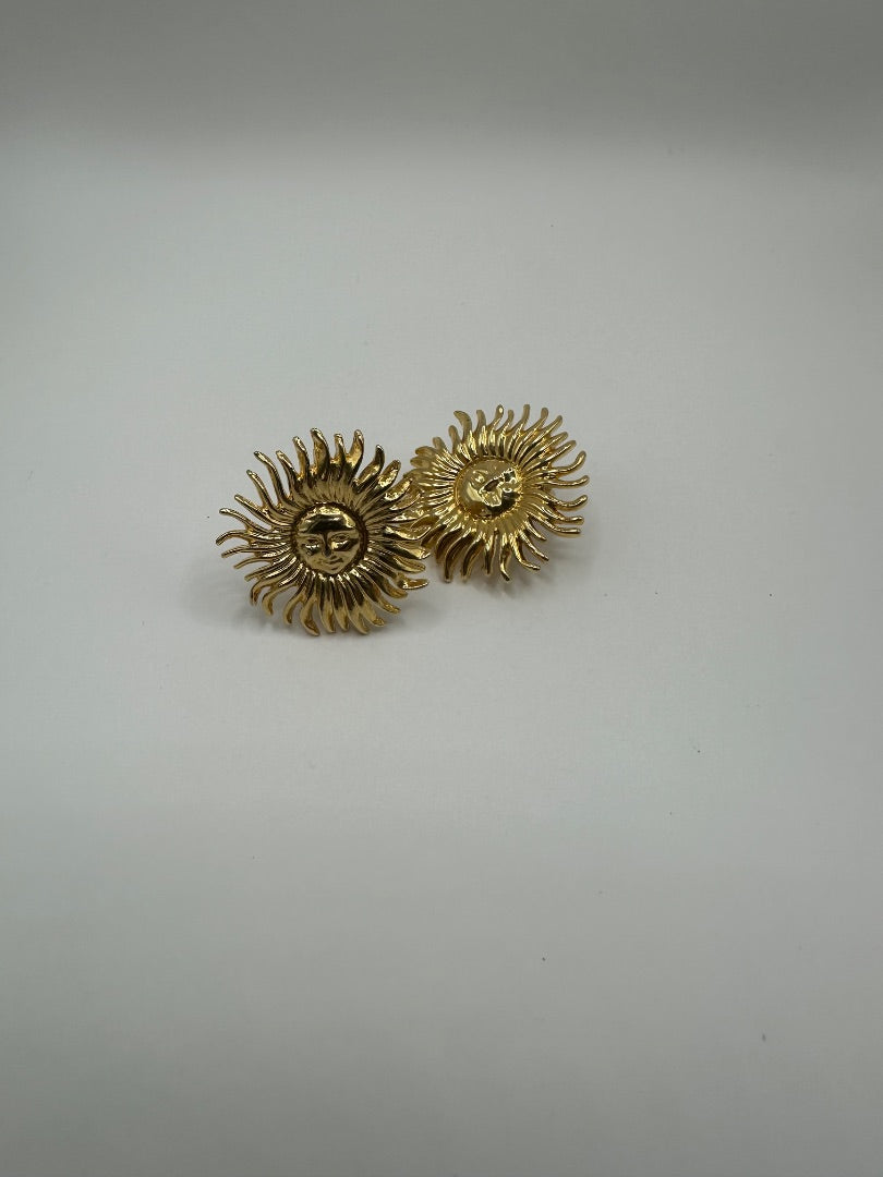 Vintage gold toned sun clip on earrings