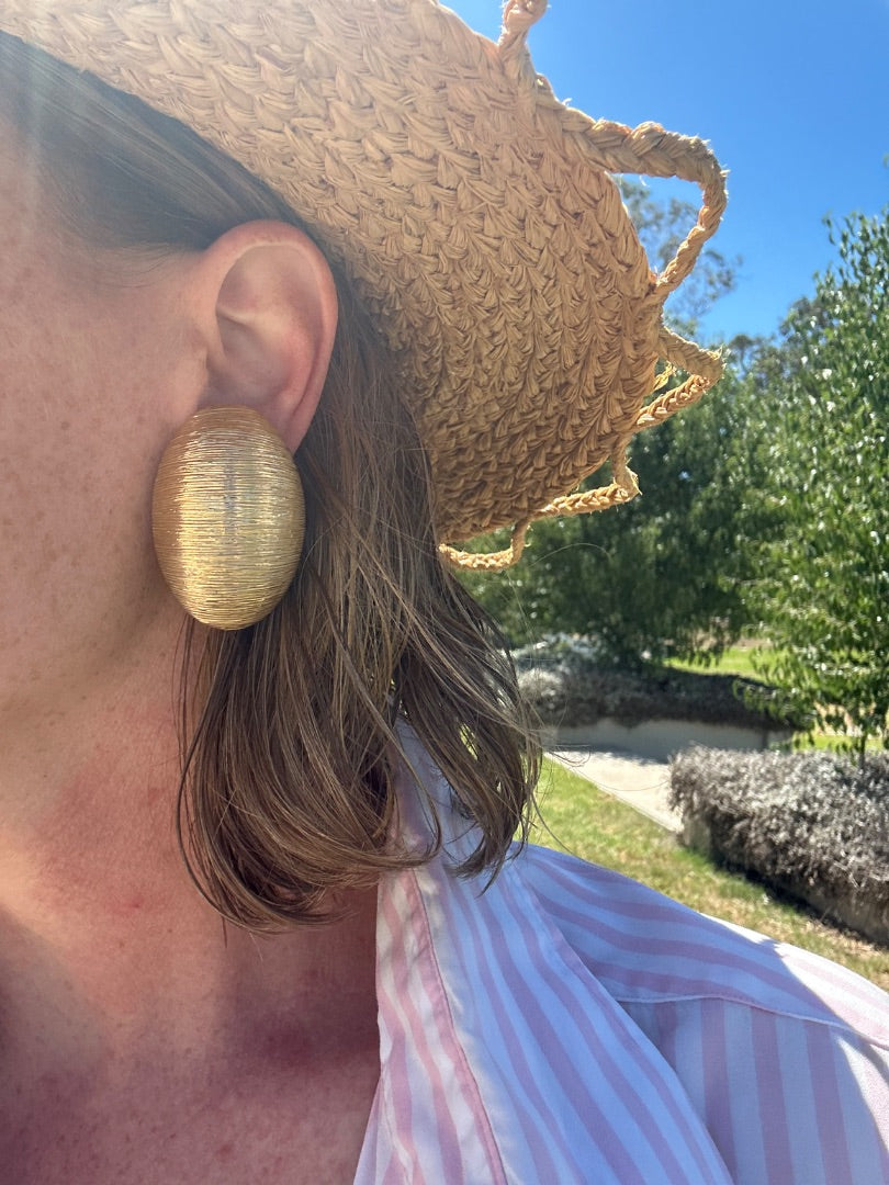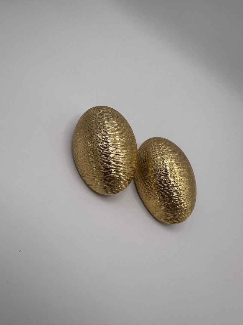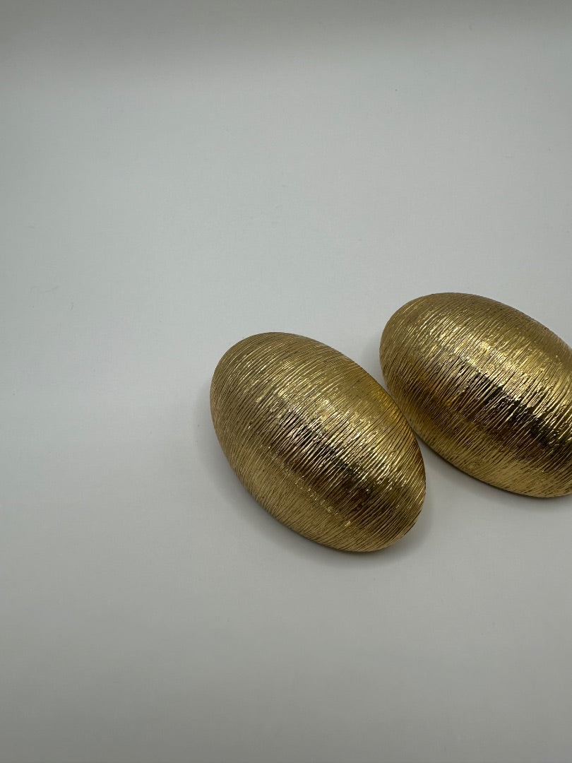 Vintage gold toned textured oval clip on earrings