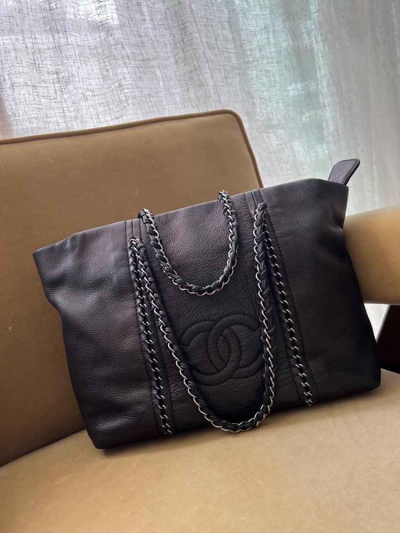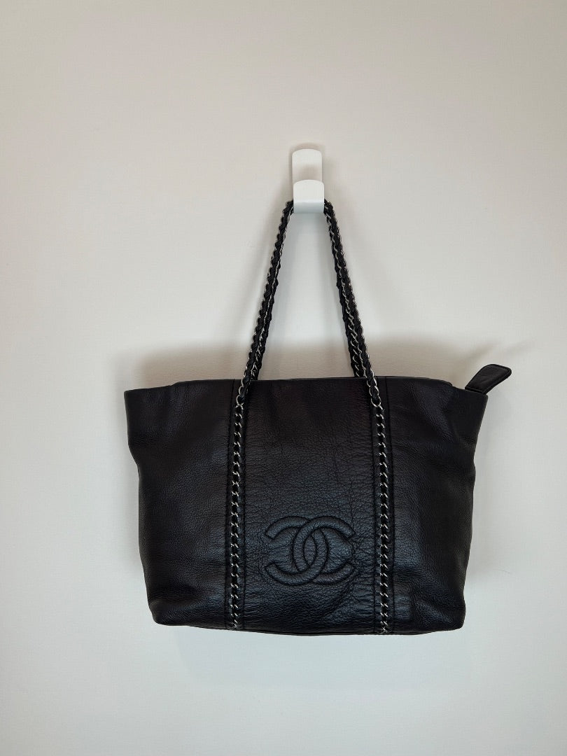 Chanel Luxe Ligne tote bag in black buttery leather
